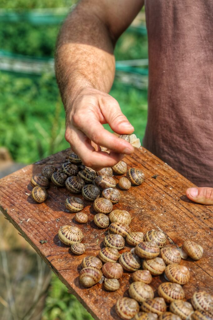 Durant l’automne, on ramasse les Gros Gris dans nos parcs et on démarre les transformations de nos escargots pour les marchés de Noël !